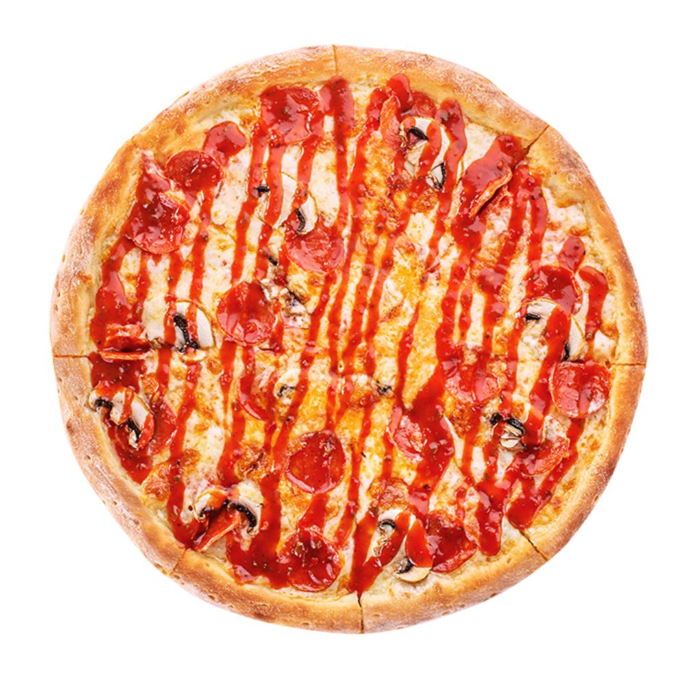 Пепперони, томатный соус, сыр «Моцарелла», шампиньоны, соус «Сальса»